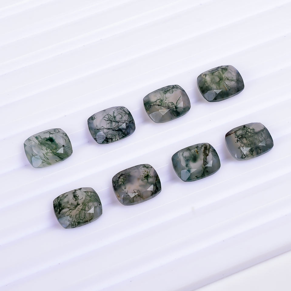 Vikas Gems Green Moss Agate Cushion Brilliant Cut Natural Loose Gemstone Jewelry Making Customizable 10.0x8.0x4.0 mm High