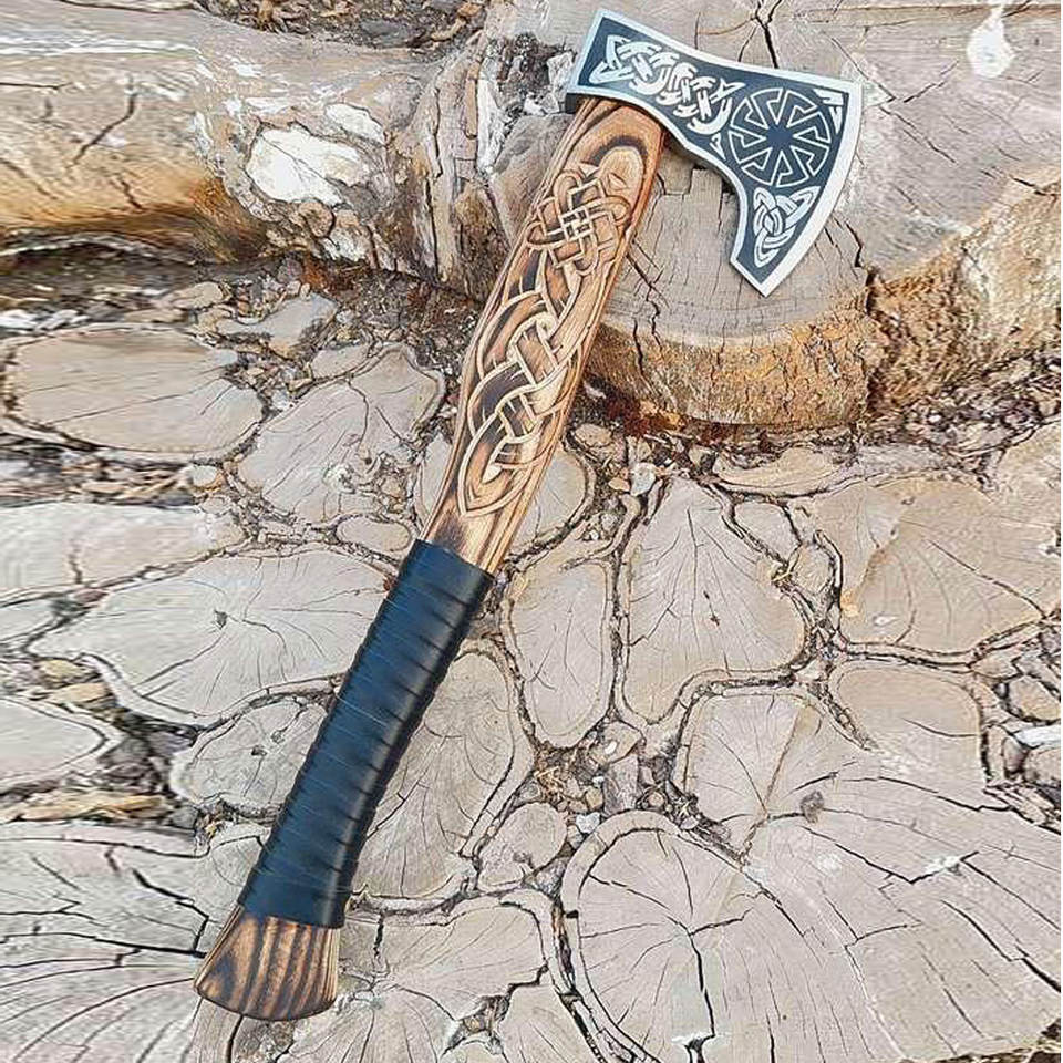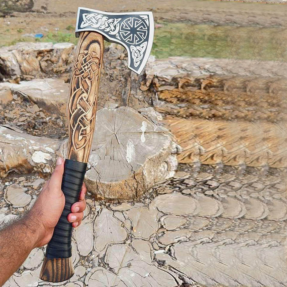 Viking Axe Industrial Handmade Scandinavian Inspired Carbon Steel Blade Wooden Handle Perfect for Outdoor Enthusiasts Collectors