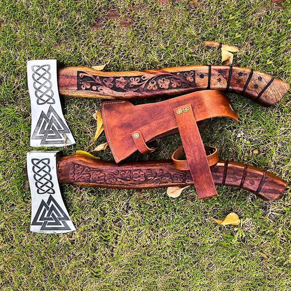 SCL- Viking Axe Authentic Tomahawk Design 20-inch Handcrafted Carving Wood Handle for Historical Reenactments Collectors