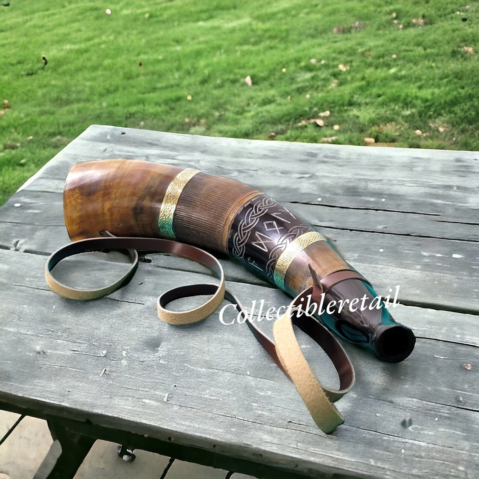 Viking Blowing Horn Battle Sounding Horn Trumpet 18Inch Premium Ox Horn Blow by HANNAN HANDICRAFT From India