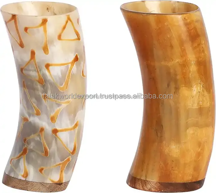 Viking-Style Handmade Natural OX Horn Tankard Natural Glass Wine Glass Cup Shot Glass for Ale Mead Wine Featuring Buffalo Horn
