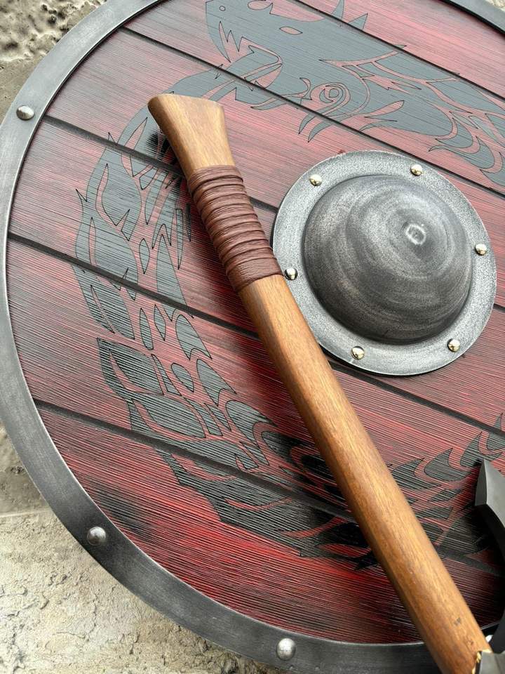 Viking Dragon Battle Shield and Medieval Battle Axe for Cosplay & Home Decor