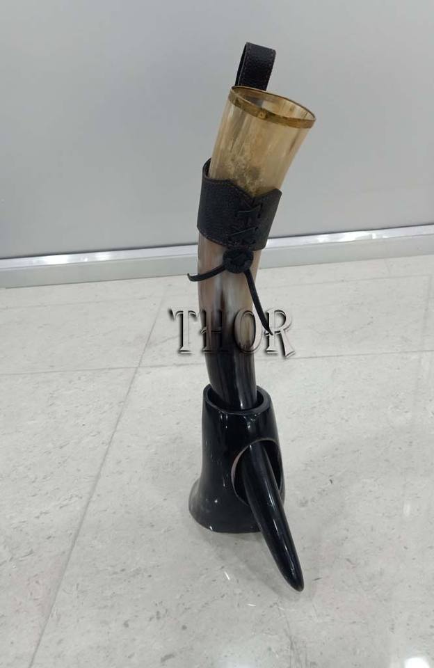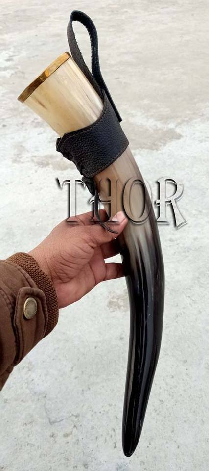Viking Drinking Horn - 17 Inch with Leather Holster 100% Authentic Handmade Beer Cup Food Grade Genuine Ox Horn Natural Shine