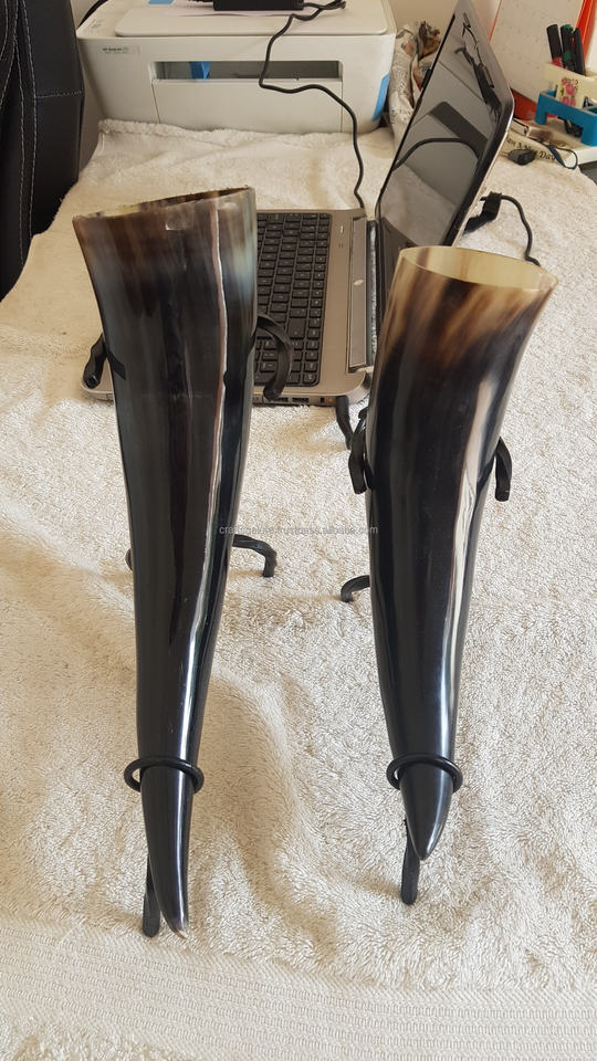 Viking Drinking Horn Metal Stand Genuine Handcrafted Polished Buffalo Horn Portable Durable for Beer/Wine Home Decor Factory