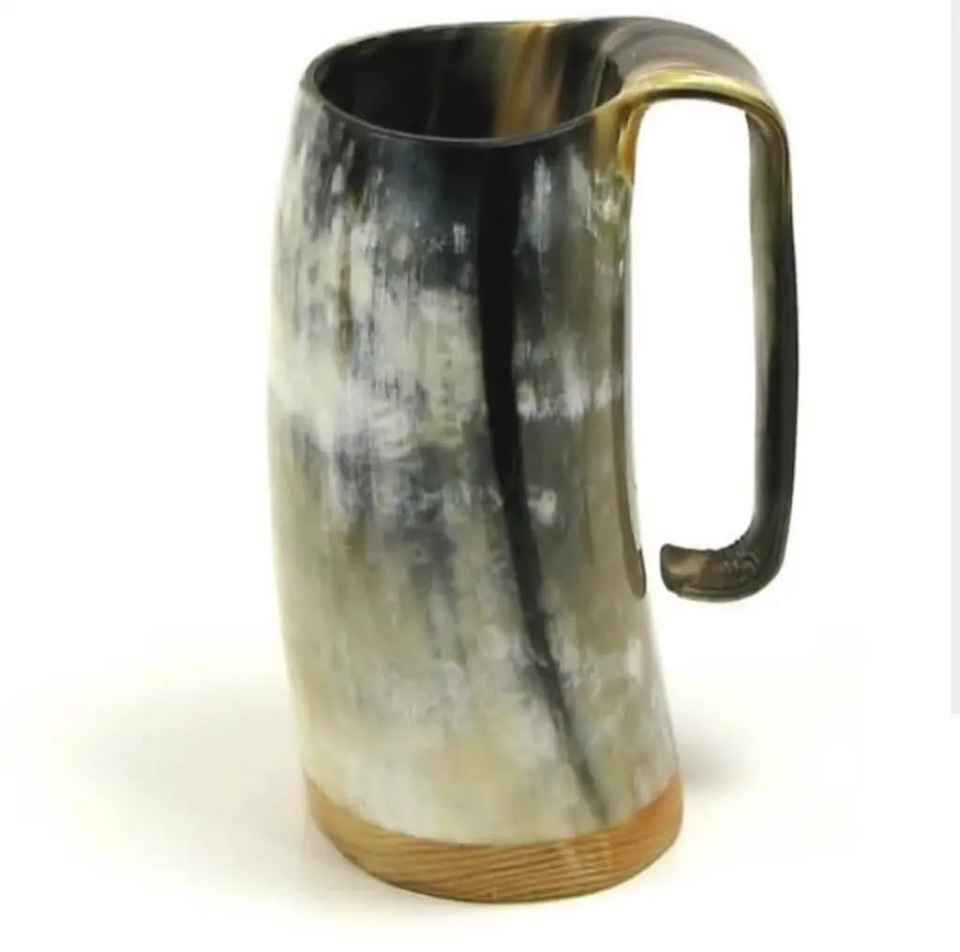 Viking Drinking Horn Mug Black with White Thor Hammer Carving Handcrafted Natural Horn Customizable for Home Bar and Gifts