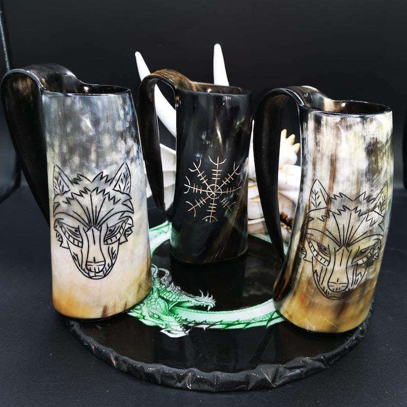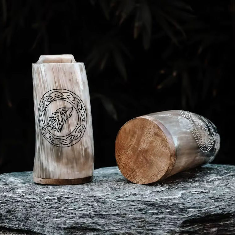 Viking Drinking Horn Mug with Engraved Design Eco-Friendly Buffalo Horn Handmade High Quality