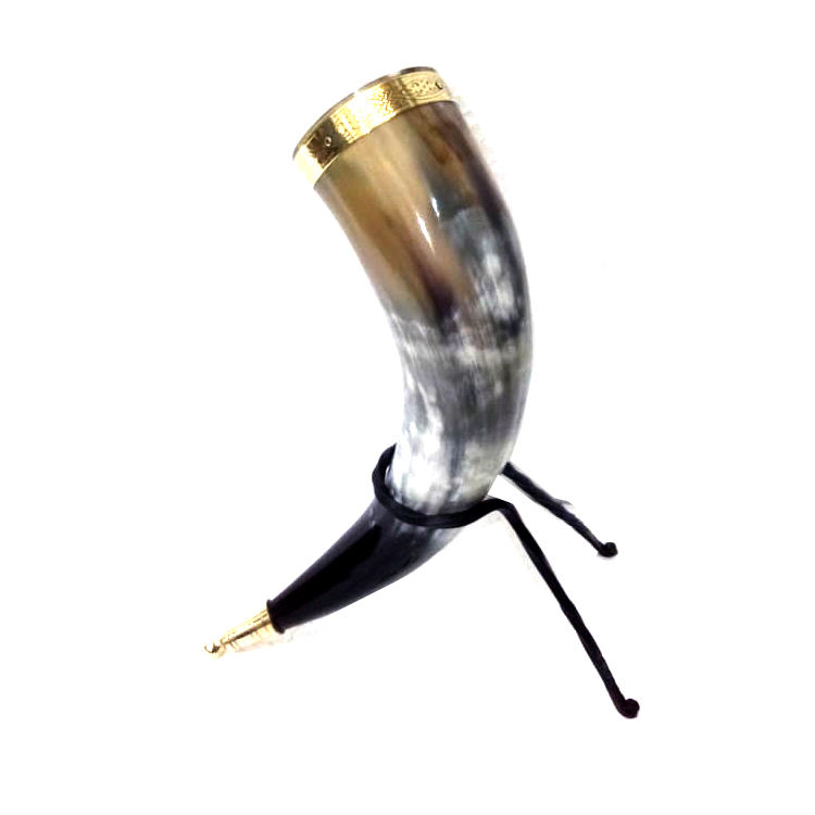 Viking Drinking Horn With Brass Lip Antique Design Medieval Drinking Horn With Stand Buffalo Drinking Horn Customized
