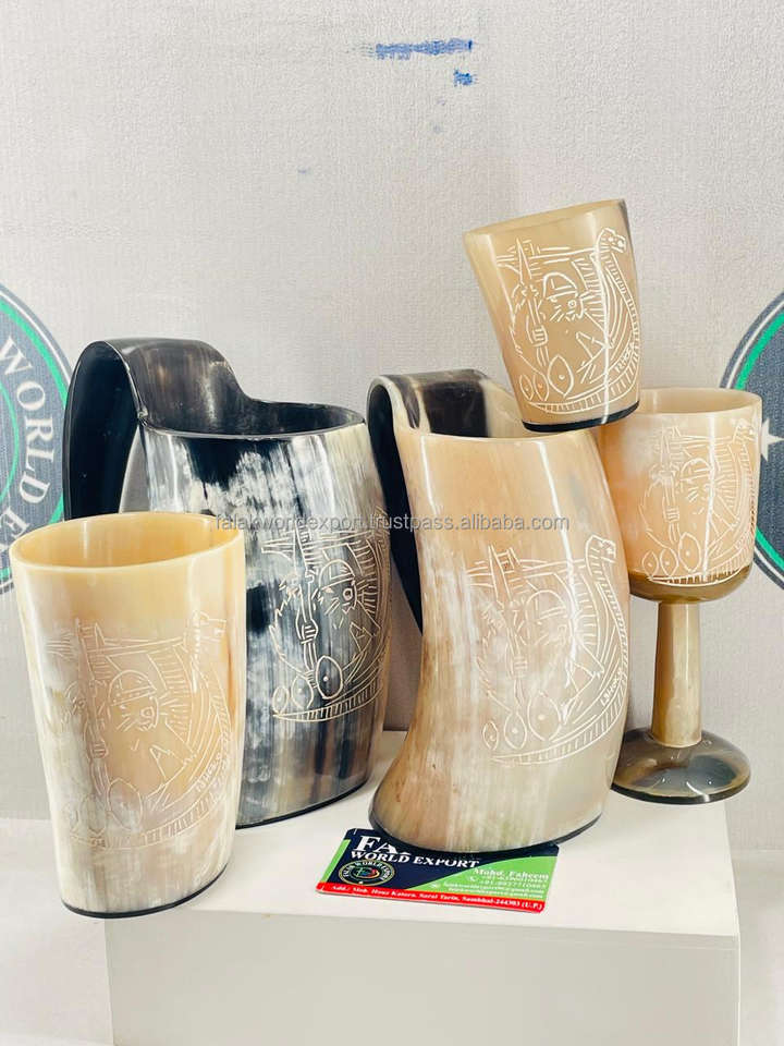 Viking Eco-Friendly Ox Horn Beer Drinking Mug Polished Buffalo Ox Horn Mugs for Decor Factory Price By Falak World Export