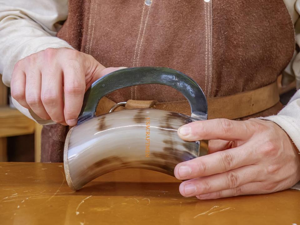 Viking Handicrafts 16 oz Eco Friendly Organic Material Wolf Engraved Drinking Horn Mug Authentic Tankard Natural Halloween