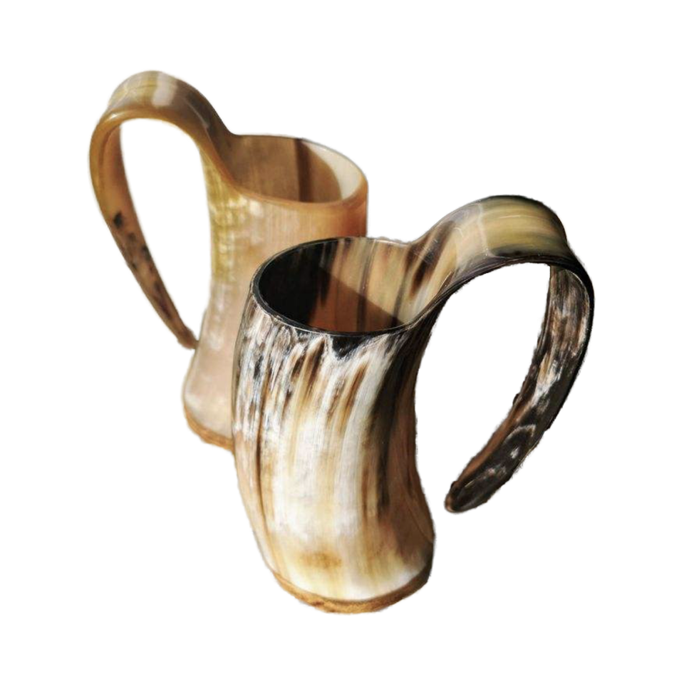 Viking Horn Drinking Mug Original Buffalo Horn Carved Animal Polished Horn Mug for Authentic