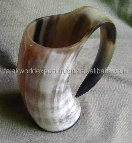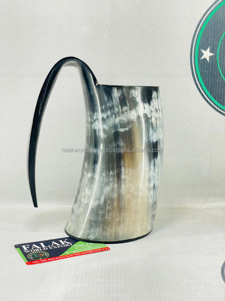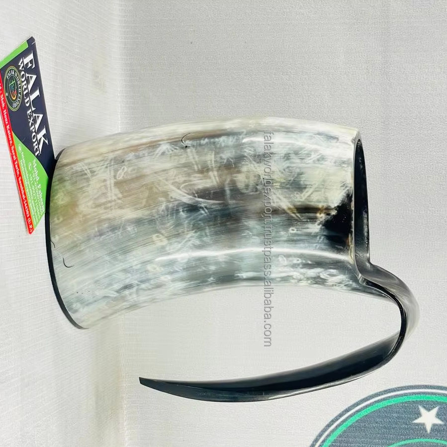 Viking Horn Mugs Hand-Carved Real Animal Horn Eco-Friendly Nautical Drinking Mug Polished Size L Modern Business Gift By FWE