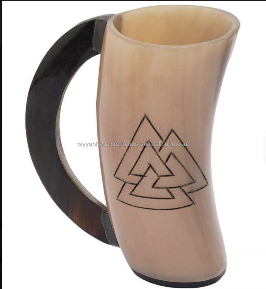 Viking Horn Mugs Hand-Carved Real Animal Horn Eco-Friendly Nautical Drinking Horn Mug Polished from India