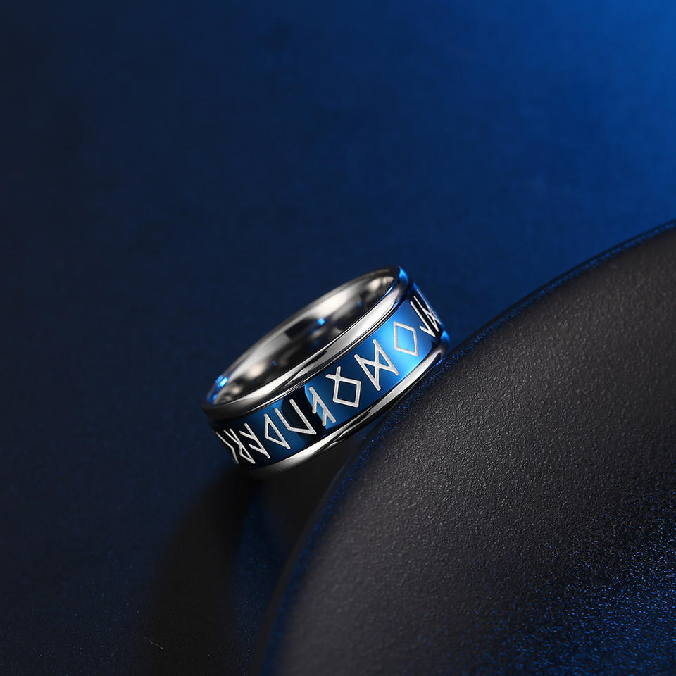 Viking Lettering Rotating Stainless Steel Men's Ring Blue Glow In Dark European American Style Jewelry Gift