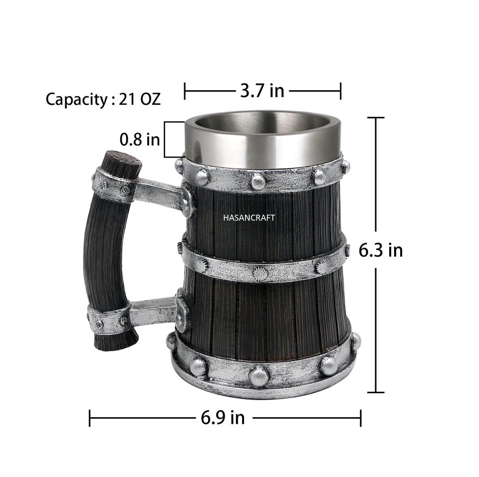 Viking Mug Beer Cup Wooden Beer Mug Stainless Steel Drink ware Wine Vintage Accessories Gifts for Halloween Christmas Birthday