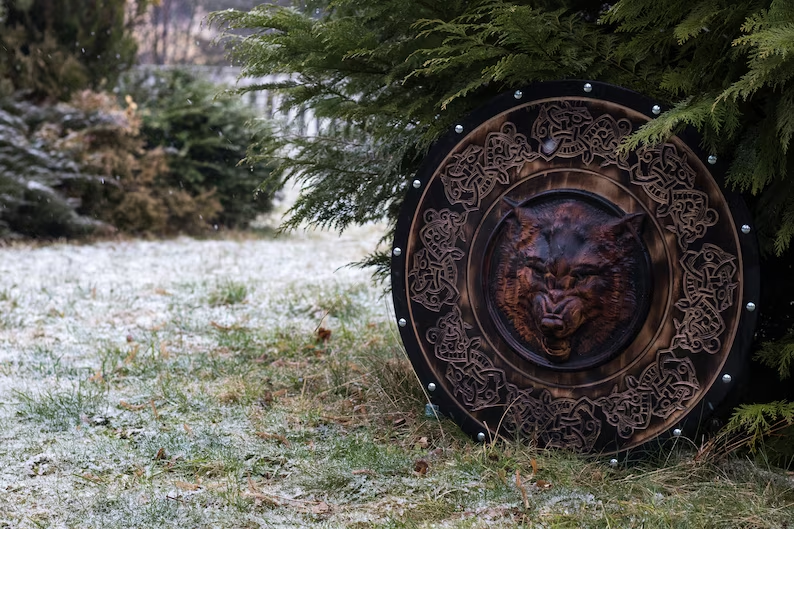 Viking Shield Wolf Shield Viking Wall Decor Wood Wall Art Handmade Home Decor.by calvin handicraft