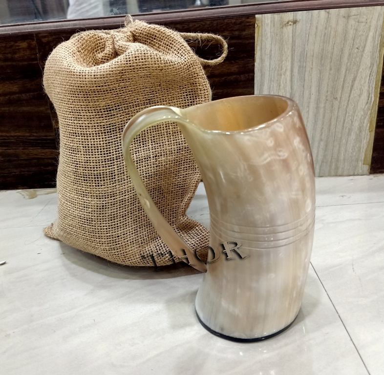 Viking Style Ceramic Beer Stein Tumbler Cup Natural Finish Drinking Horn Mug with Bag for Cold Drinks