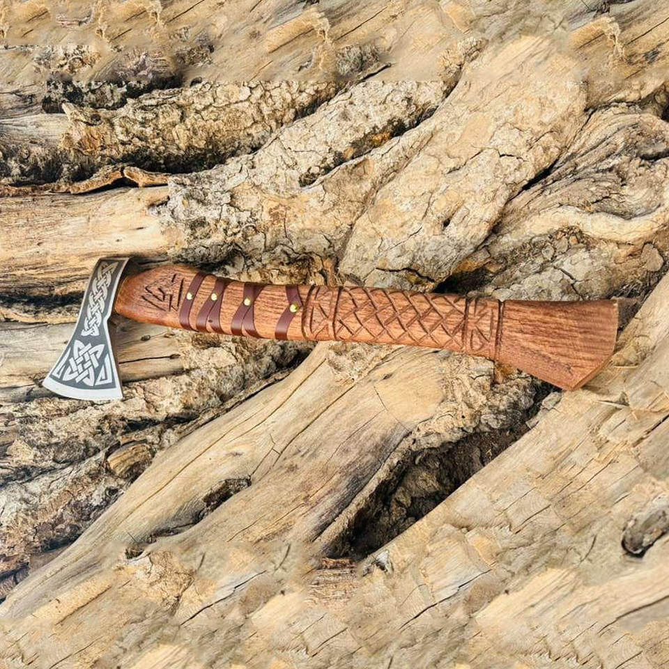 Viking Style Industrial Grade Decorative Axe with Nordic Pattern Head Carbon Steel Blade Wrapped Handle Authentic Rustic Look