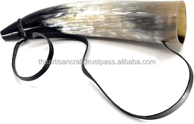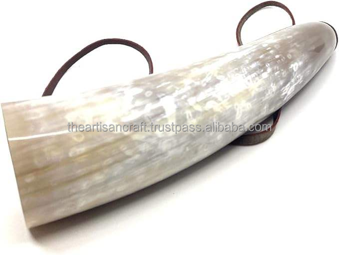 Viking War Blowing Horn 18Inch Genuine Ox Battle Trumpet with Leather Strap Hand Engraved Mouthpiece for Easy and Clear Sound