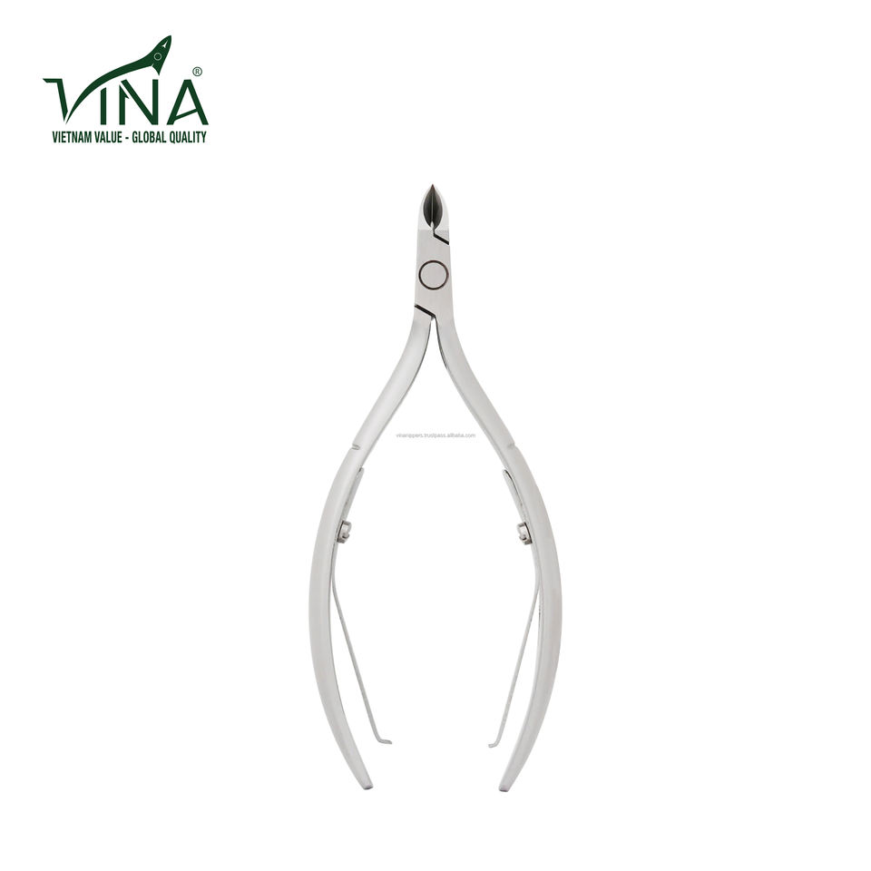 Vina VNC-06 Professional Durable Grey Stainless Steel Bevel Jaw Cuticle Nipper Long Curved Handle Balanced Motion for Nail