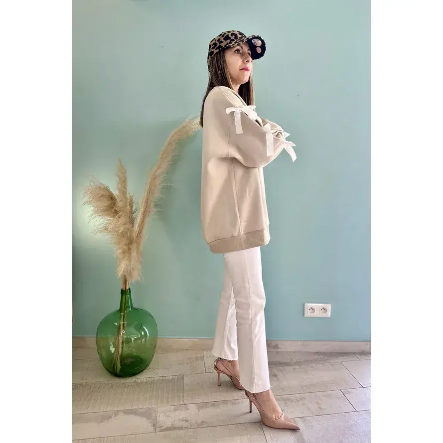 Vintag Touch Flore Beige Pull Femme Breathable Soft High Knitted Sweater Embroidered Stripe Pattern Ladies' Winter Top Front