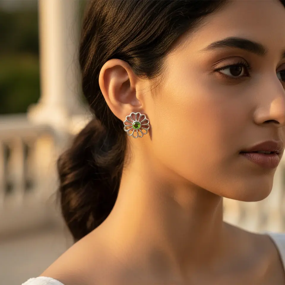 Vintag Vintage 925 Silver Stud Earrings Peridot Flower 14K 18K Gold Diamond Agate Zircon Geometric Shape for Women Engagement