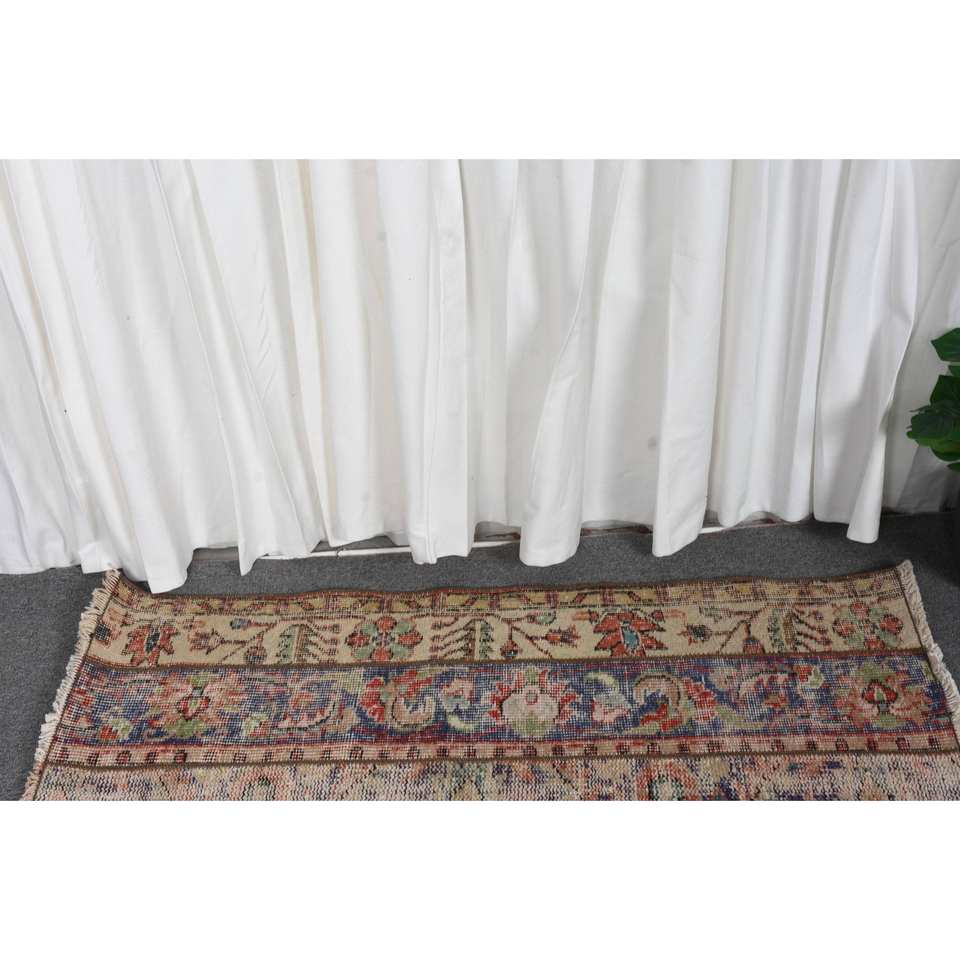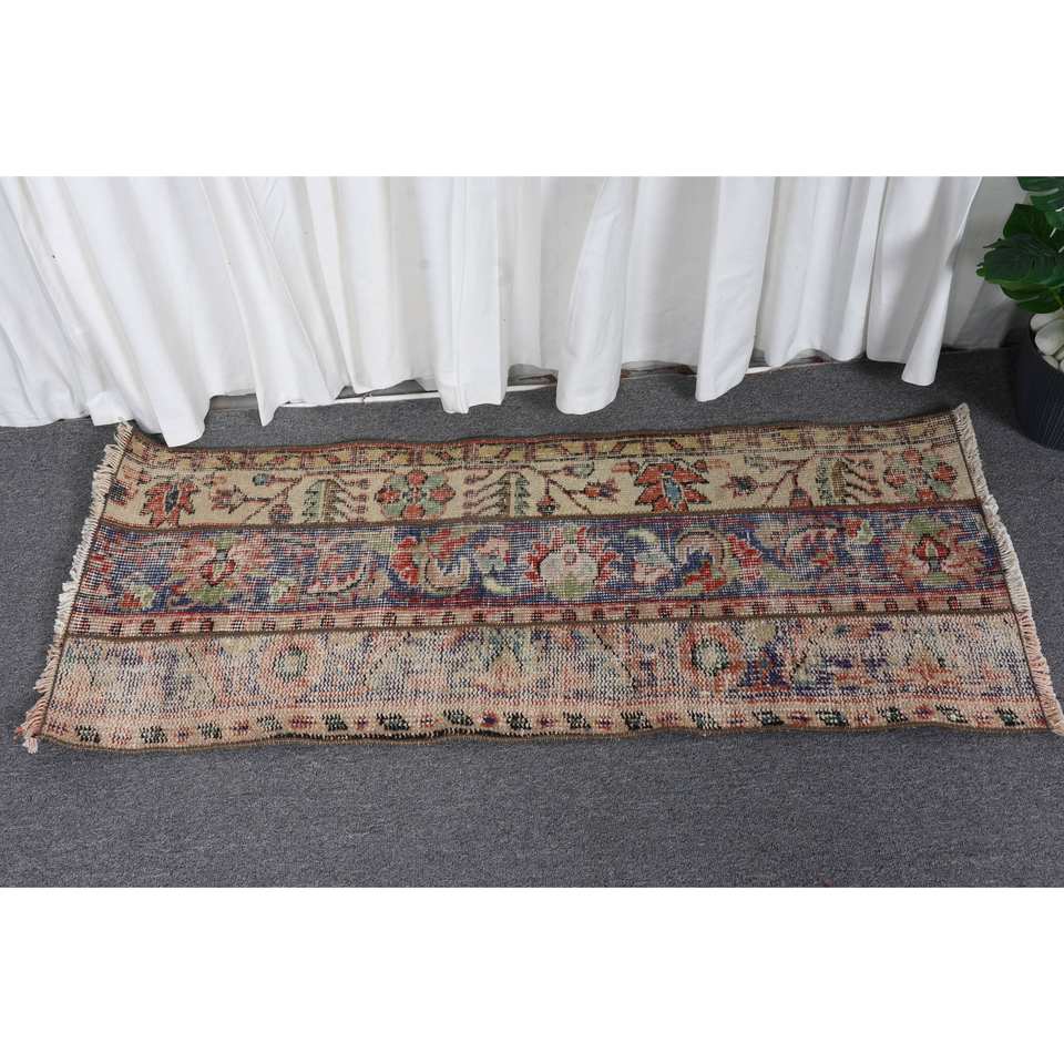 Vintage 1.6x3.8ft Turkish Wool Rug Beige Red Patchwork Abstract Handmade Rug for Entryway 10mm Thick Latex Backing for Teens