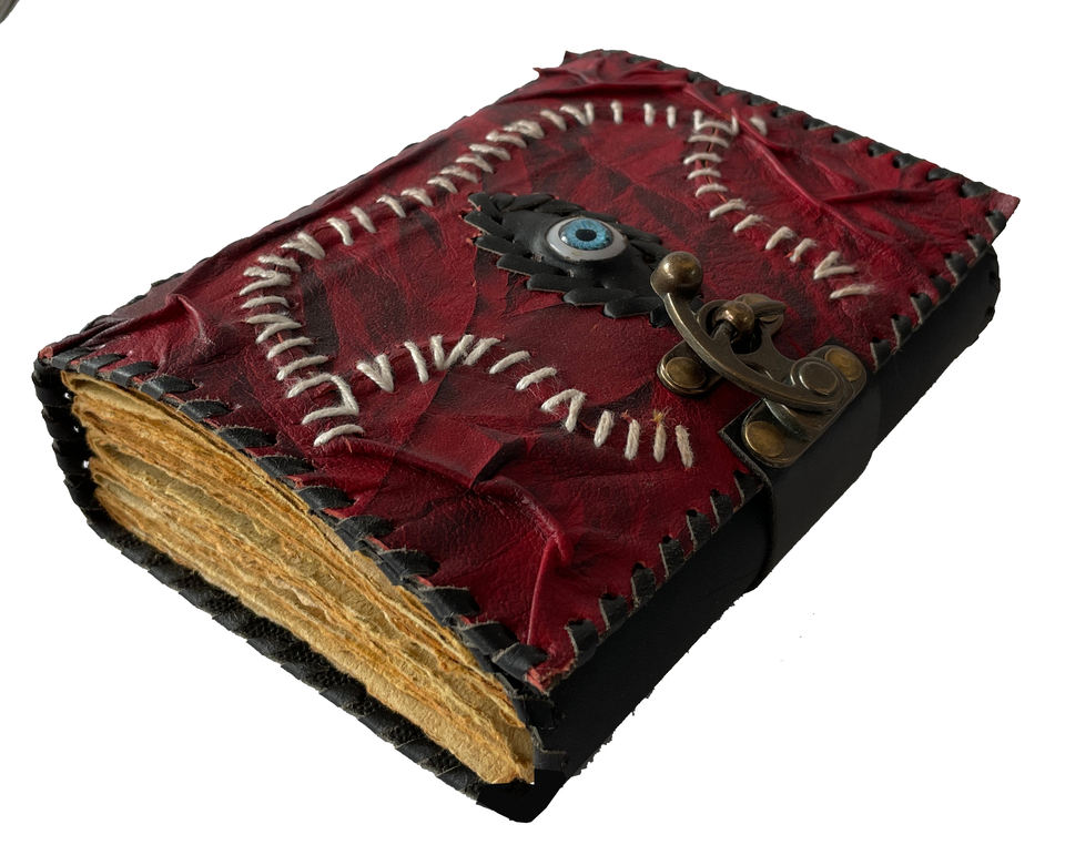 Vintage 100% Genuine Leather Journal Hocus Pocus Book Of Spells Prop Gifts Halloween Decoration Decor Notebook Red & Black Diary