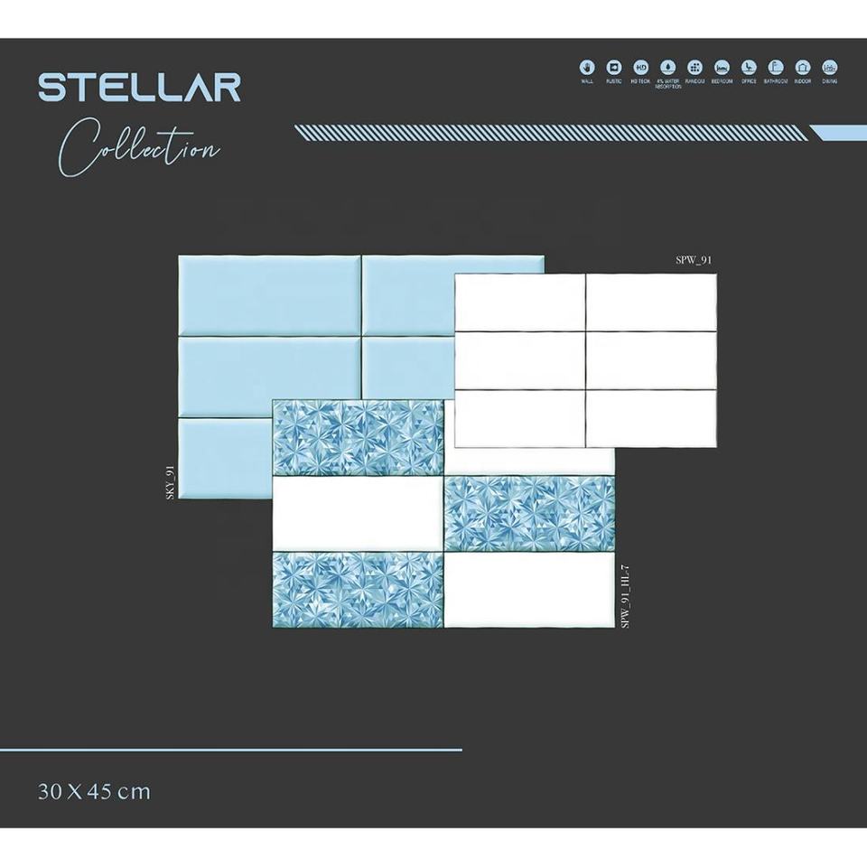 Vintage 12x18 Digital Rustic Stone Brick 300x450mm Ceramic Wall Tiles Glossy Blue White Indoor Decorative Tiles