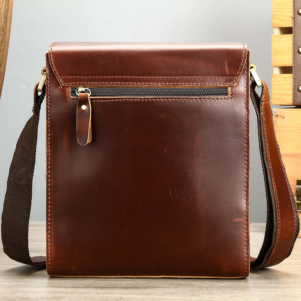 Vintage 14 Inch Genuine Crazy Horse Leather Briefcase Men's Messenger Laptop Office Bag