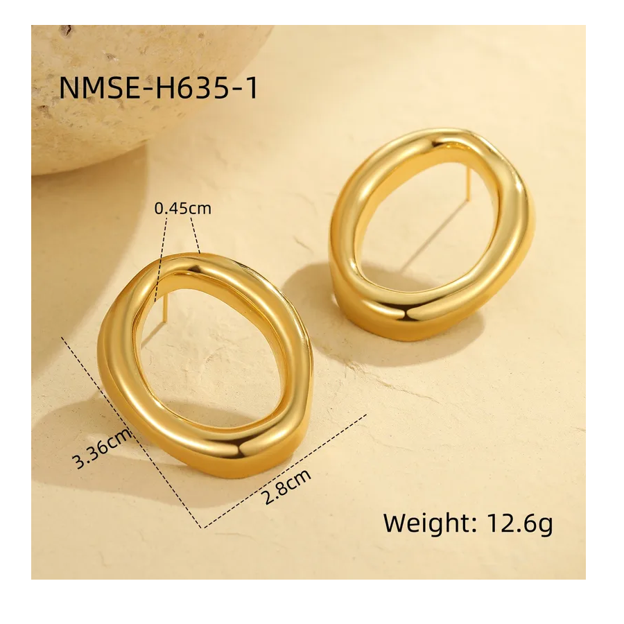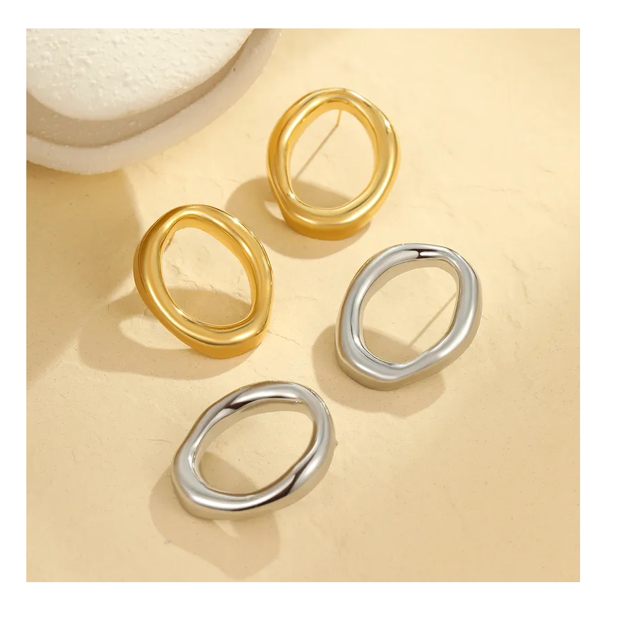 Vintage 18K Gold Plated Stainless Steel Stud Earrings Irregular Circle Shaped Hoop with Pearl Pure Color Fashion Studs