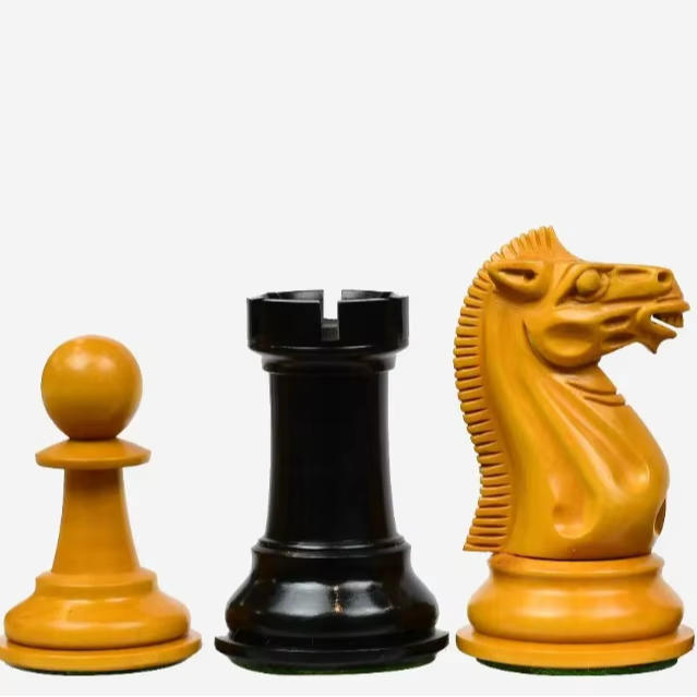 Vintage 1940 Soviet Chess Pieces Ebony and Antiqued Boxwood 4 Inch King At Best Price