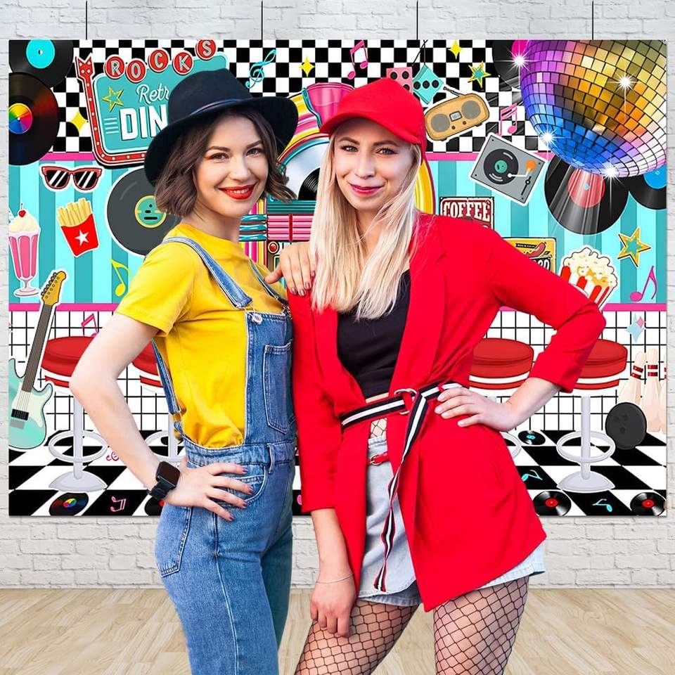 Vintage 1950s Retro Diner Theme Custom 7x5ft Rock n Roll Party Backdrop Photo Booth Props in Stock
