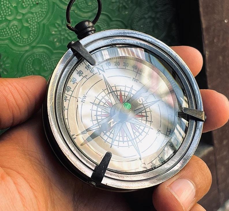 Vintage 2.5 Inch Solid Dollond London Marine Brass Nautical Pocket Compass round Shape with Polished Metal Crafts