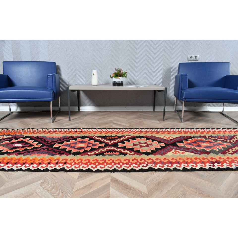 Vintage 2.8x10.3 ft Rug, Runner Turkish Rug, Red Moroccan Wool Rug
