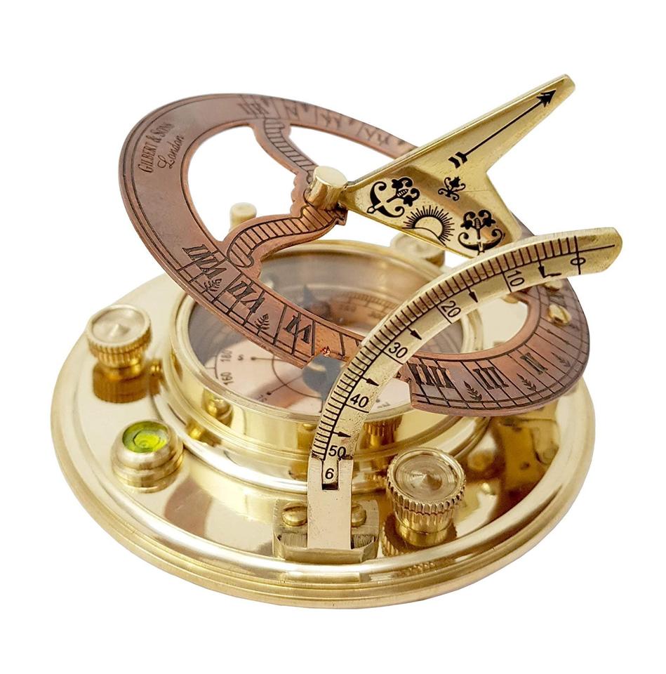 Vintage 2" Brass Polish Shinny Working Push Button Sundial Compass