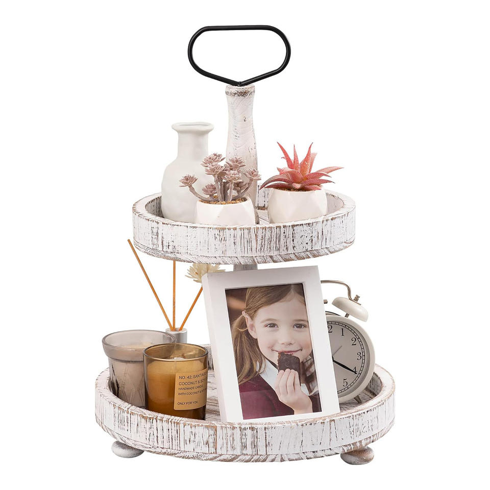 Vintage 2 Tiered Tray Stand Wooden Farmhouse Decor Serving Tray Coffee Table Centerpiece Decorative Trays for Kitchen & Home