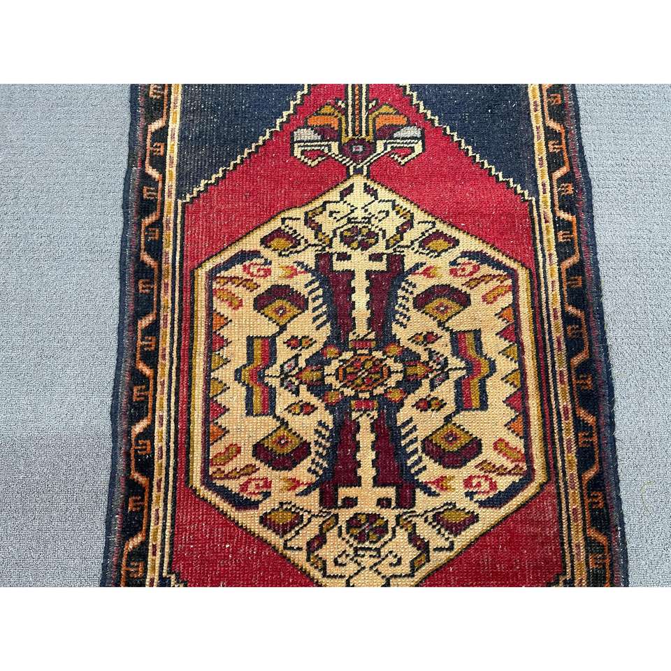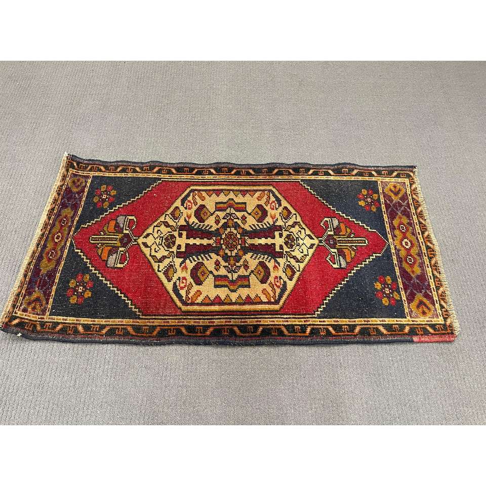 KayraHome Vintage 2x3.9 ft Small Turkish Red Patchwork Wool Rug Eco-Friendly Traditional Latex Backing Medium Thickness Medium