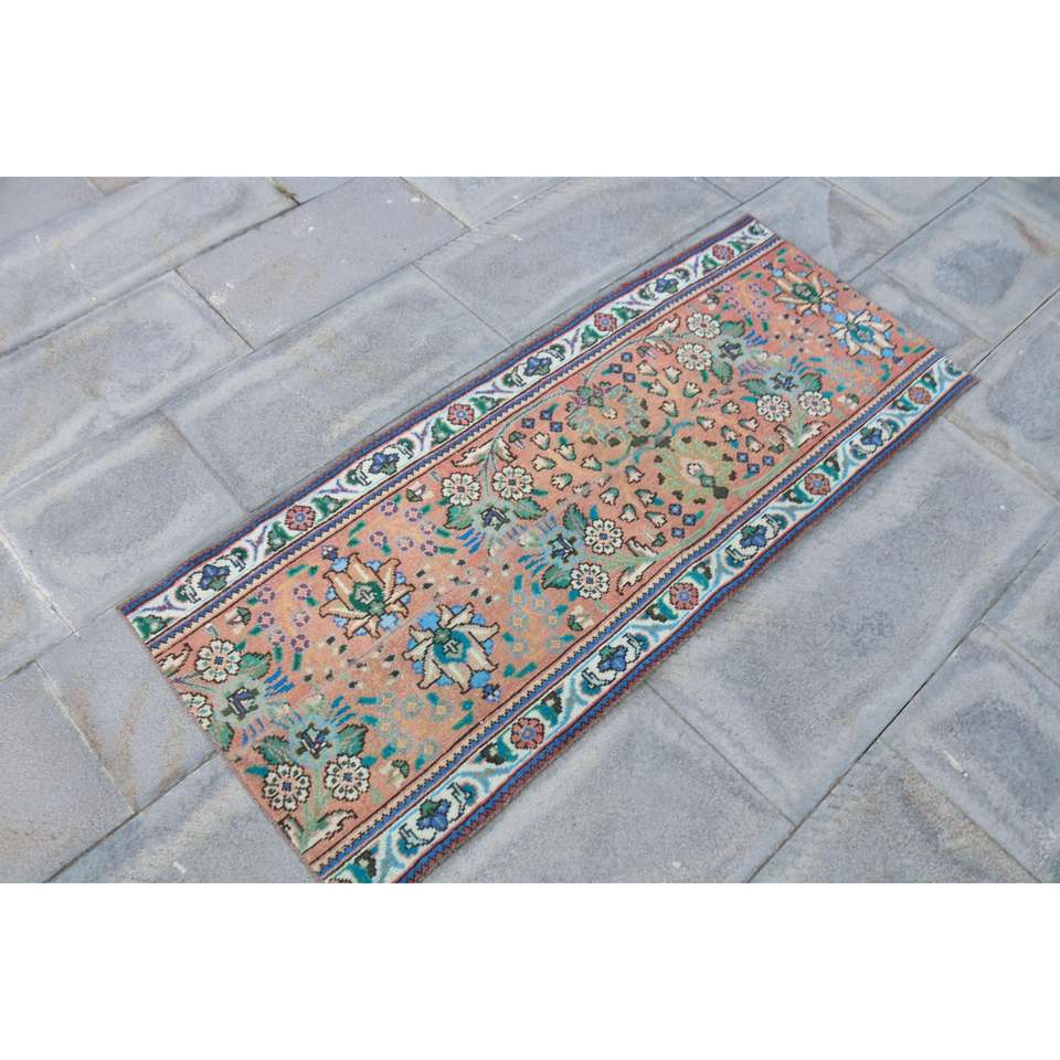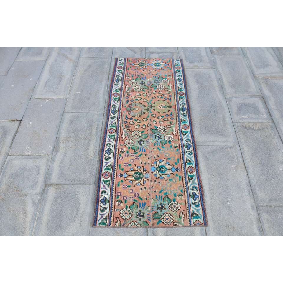 Vintage 2x4.7 ft Rug, Small Turkish Rug, Red Blue Southwestern Wool Rug