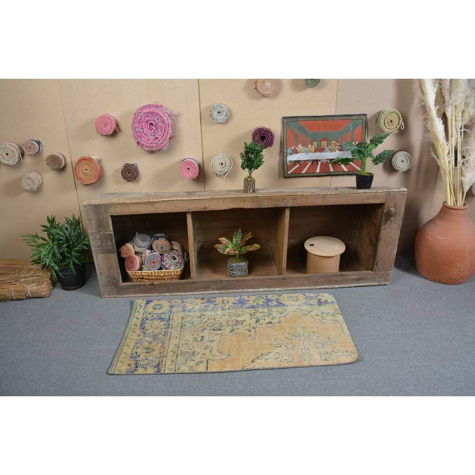 Vintage 2x4ft Turkish Rug Beige Blue Flat Weave Carpet Patchwork Pattern for Teen Living Room Decorations Wool Material Latex