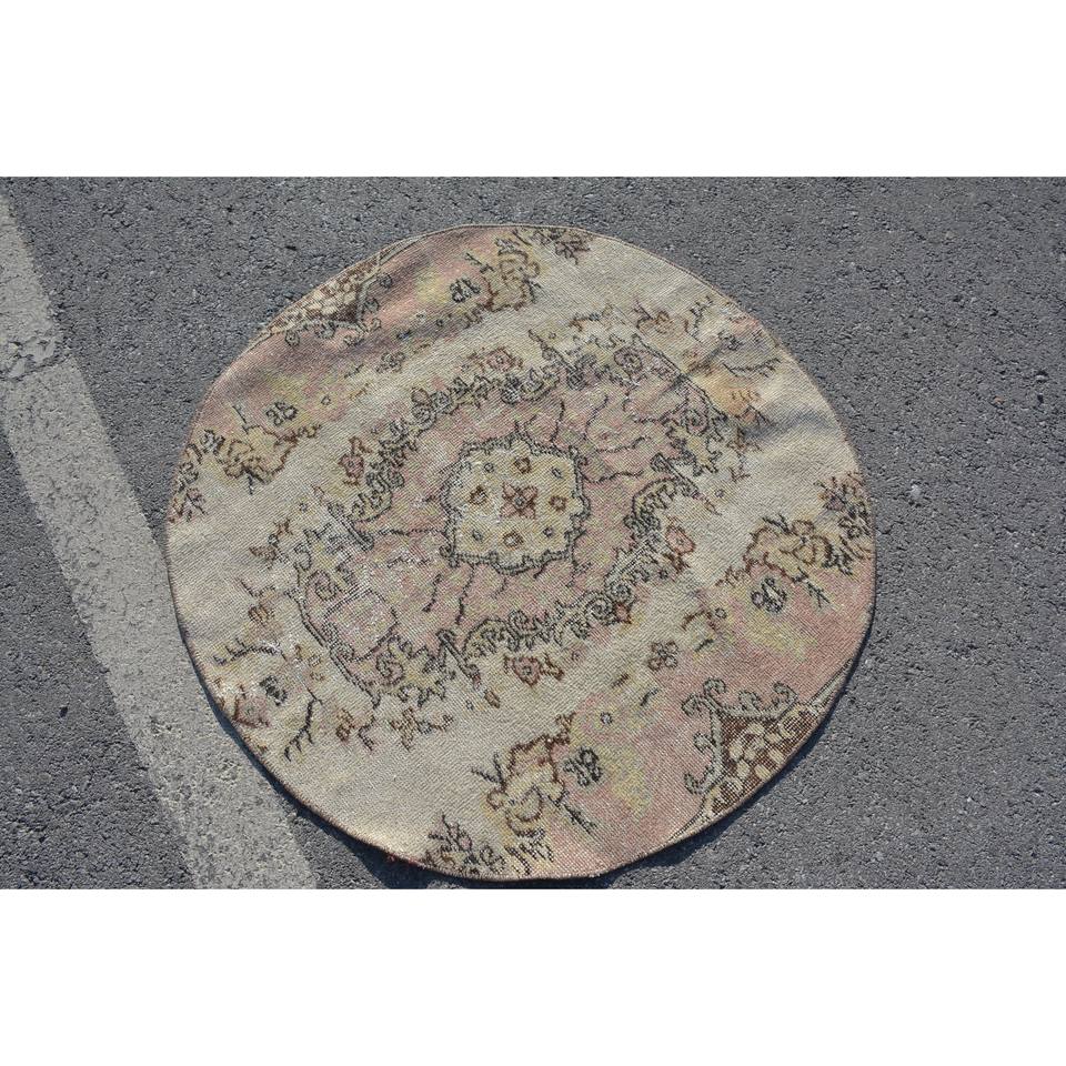 Vintage 3.5ft X 3.5ft Turkish Rug Beige Pink Patchwork Wool Large Area Rectangle Area Rug for Teens Abstract Style Tabriz Latex
