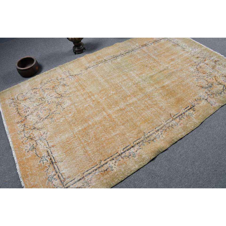 Vintage 4.8ft X 8.1ft Turkish Rug Classic Large Area Rectangle Hallway Pattern Yellow Beige Wool Latex Backing for Teen's Room