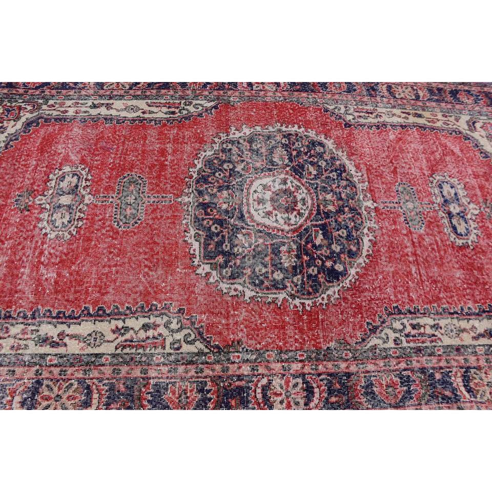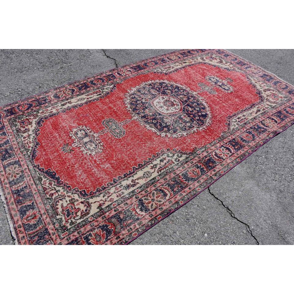 Vintage 5.5 X 9.9ft Turkish Wool Rug Red & Blue Patchwork Flat Weave for Living Room Decorations Latex Backed