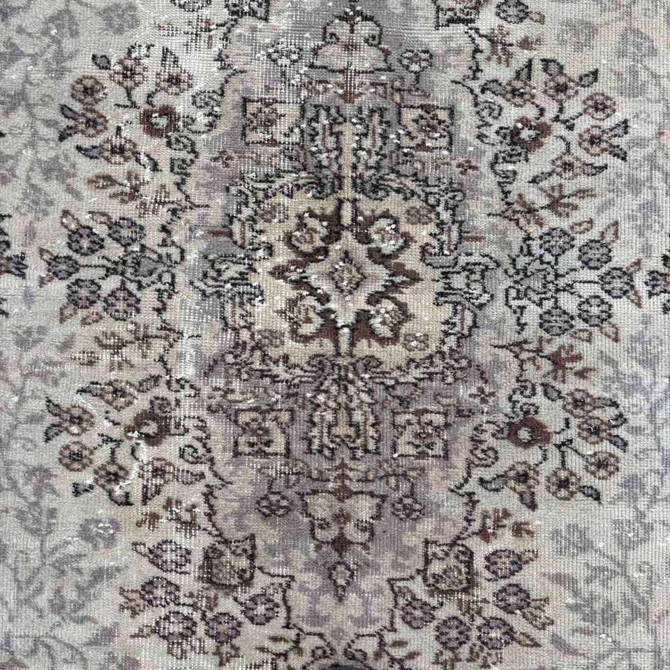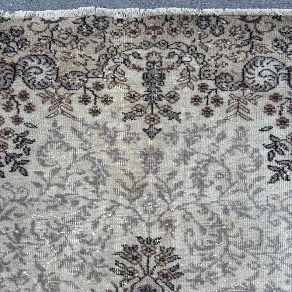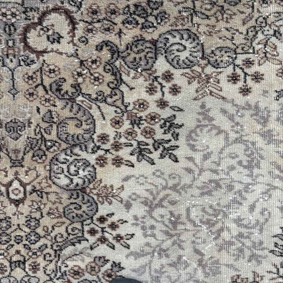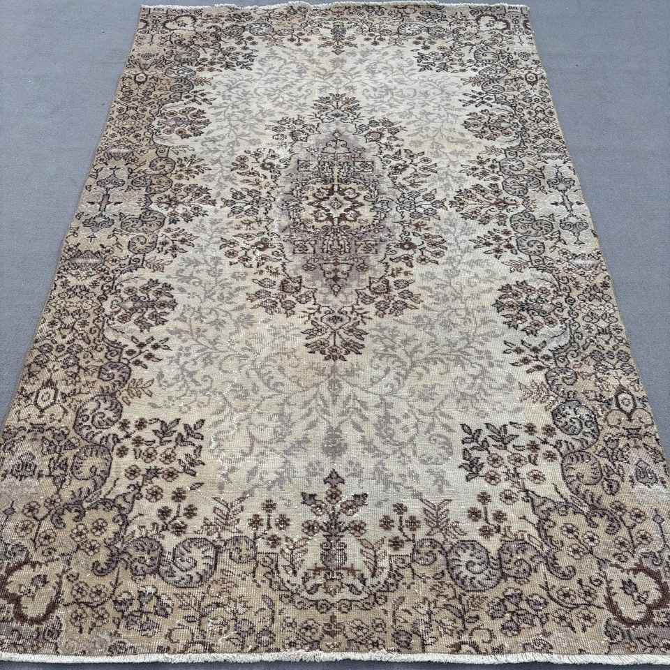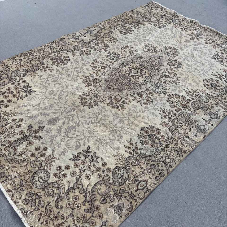 Vintage 5.7x9 ft Turkish Wool Rug Eco-Friendly Patchwork Design with Brown Plants & Trees Latex Backing