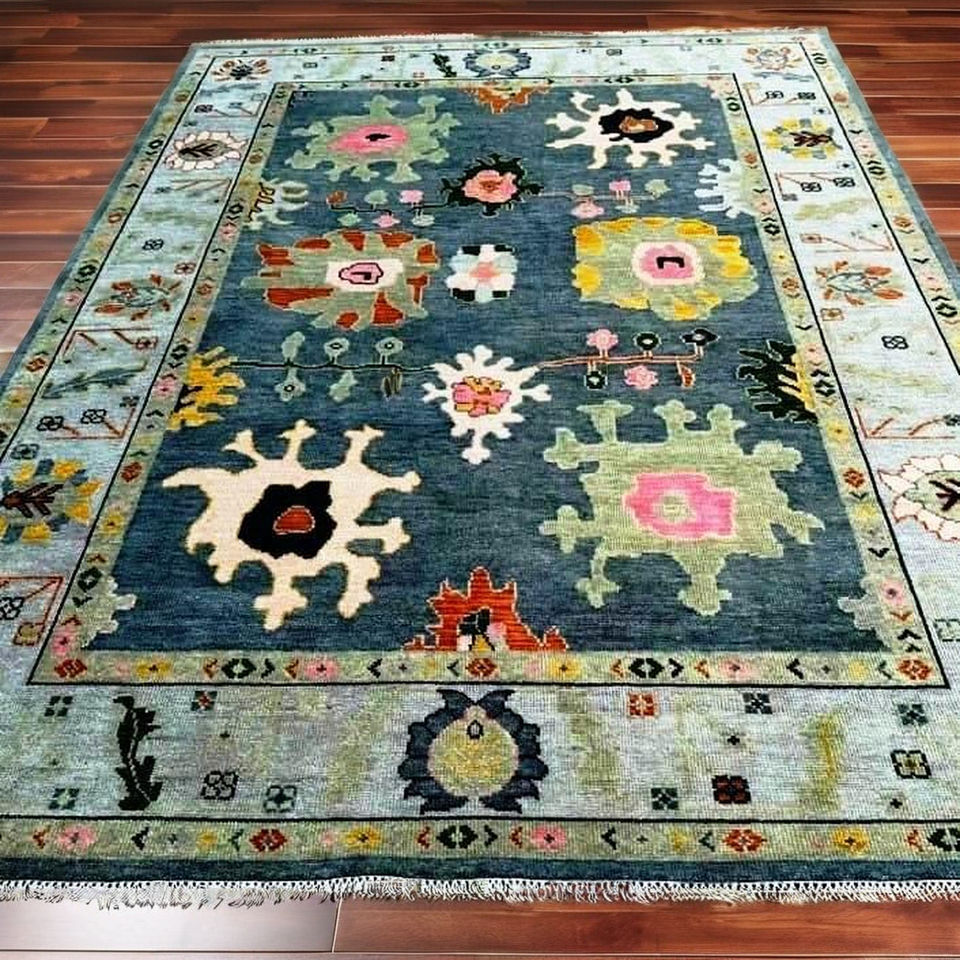 Vintage HandKnotted Oushak:Persian Vintage Oushak Rugs Hand-Knotted Wool Beautiful Design