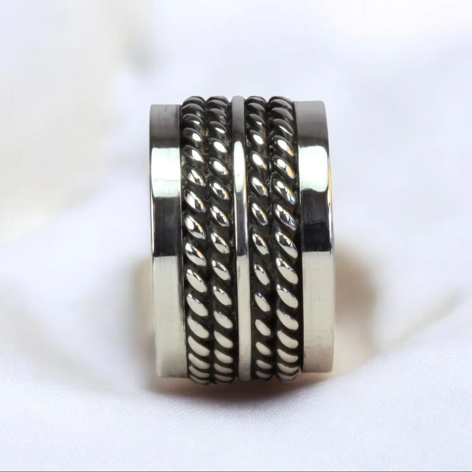 Vintage 925 Sterling Silver Braided Ring Engagement Adjustable Woven Band Wedding Jewelry for Men Women Minimalist Gift Turkey