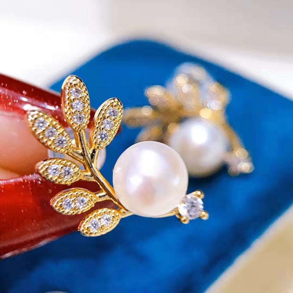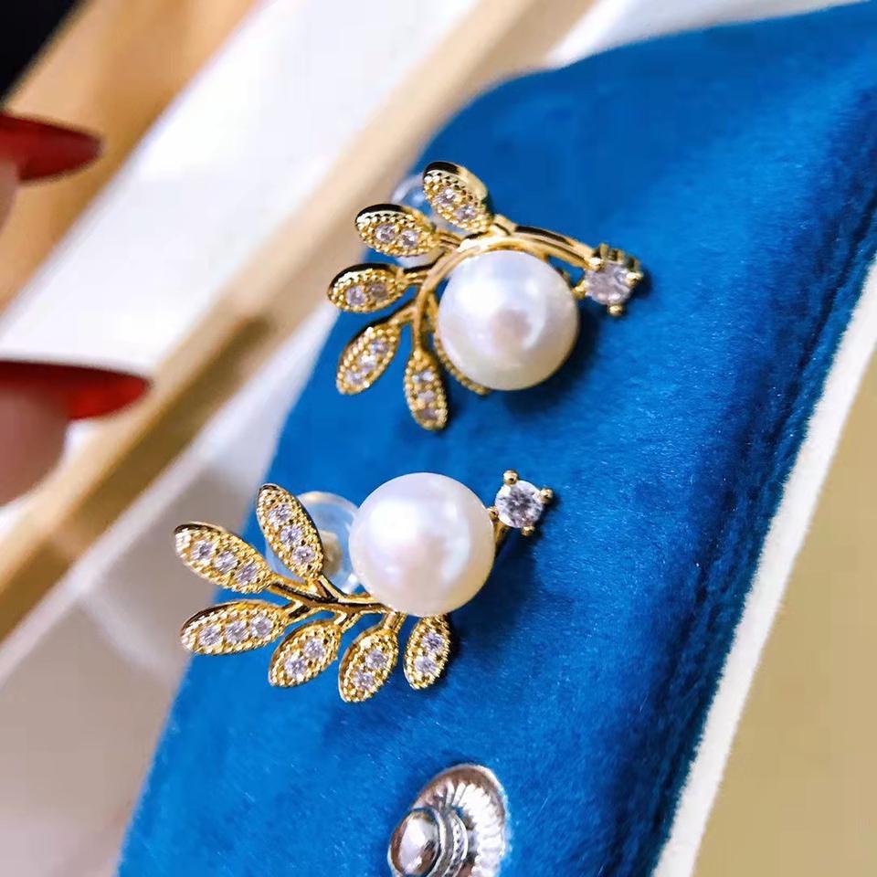 Vintage 925 Sterling Silver Fresh Mimosa Pearl Stud Earrings Exquisite Phoenix Tail Flower Design
