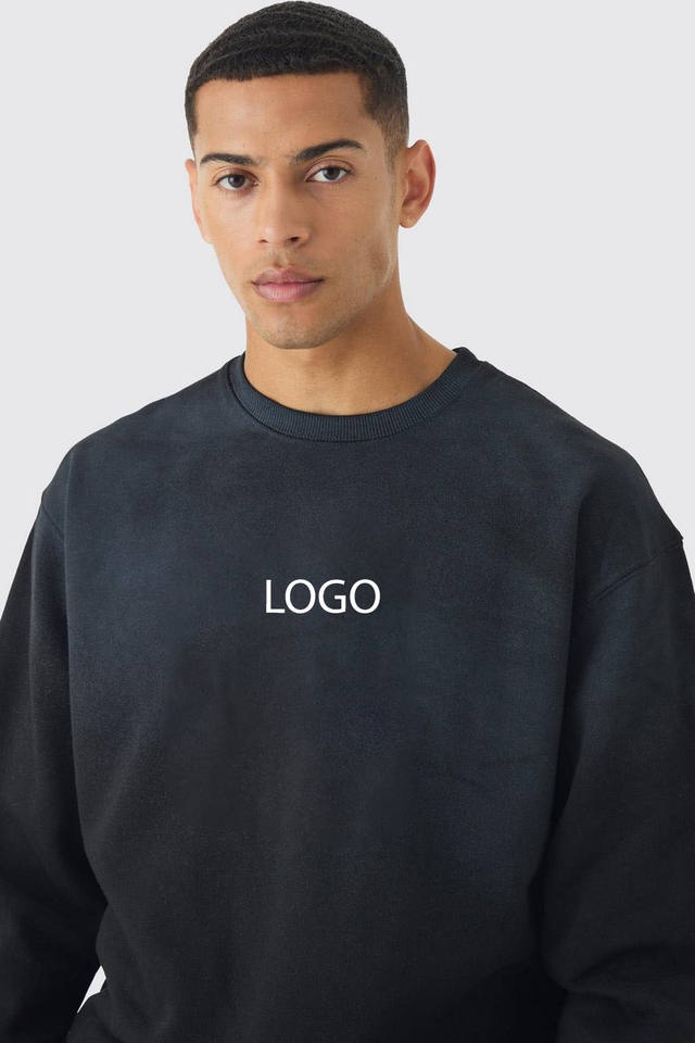 Vintage Acid Wash Men's Crew Neck Sweatshirts 100% Cotton Oversized Drop Shoulder Hoodies Sun Fade Custom Logo Plain Dyed Winter