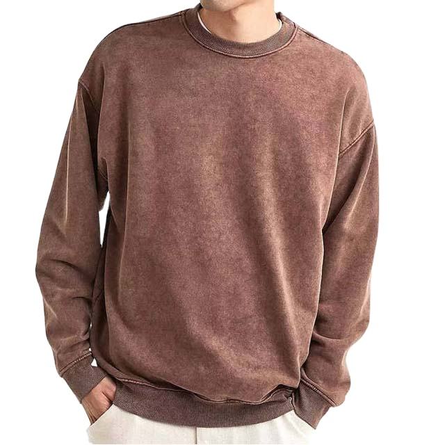 Vintage Acid Wash Old Neck Sweatshirts for Men Acid Washed Heavy Terry Trendy Men Sweatshirt for Winter