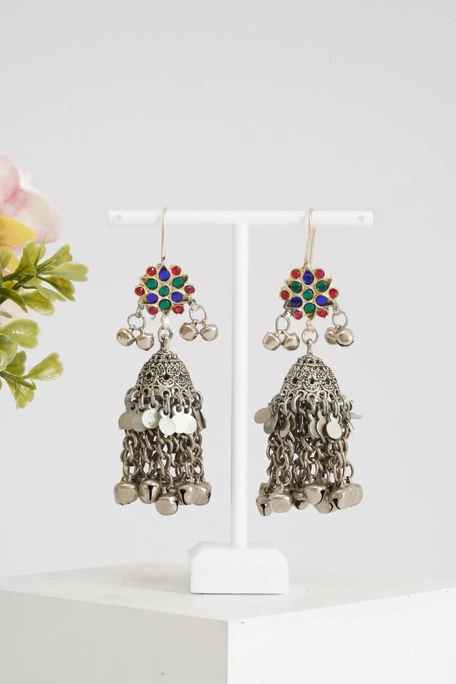 Vintage Afghan Kuchi Round Turquoise Statement Earrings Large Silver Base With Red Blue Accent Beads Handmade Jewelry