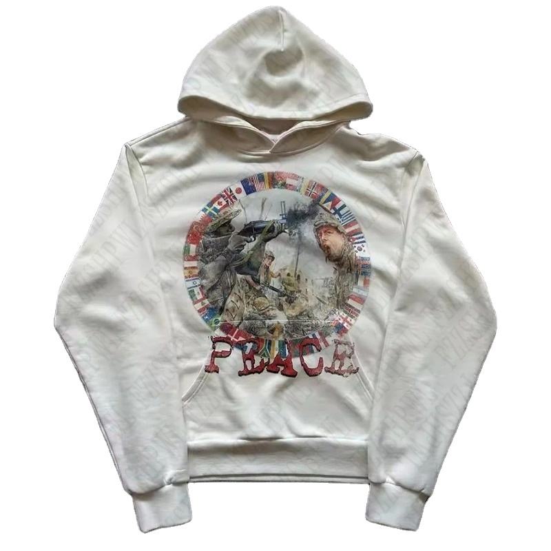 Vintage American Style Harajuku Graphic Print Punk EMO Hooded Sweatshirt Men Women Loose Streetwear Fashion Pullover Hoodie